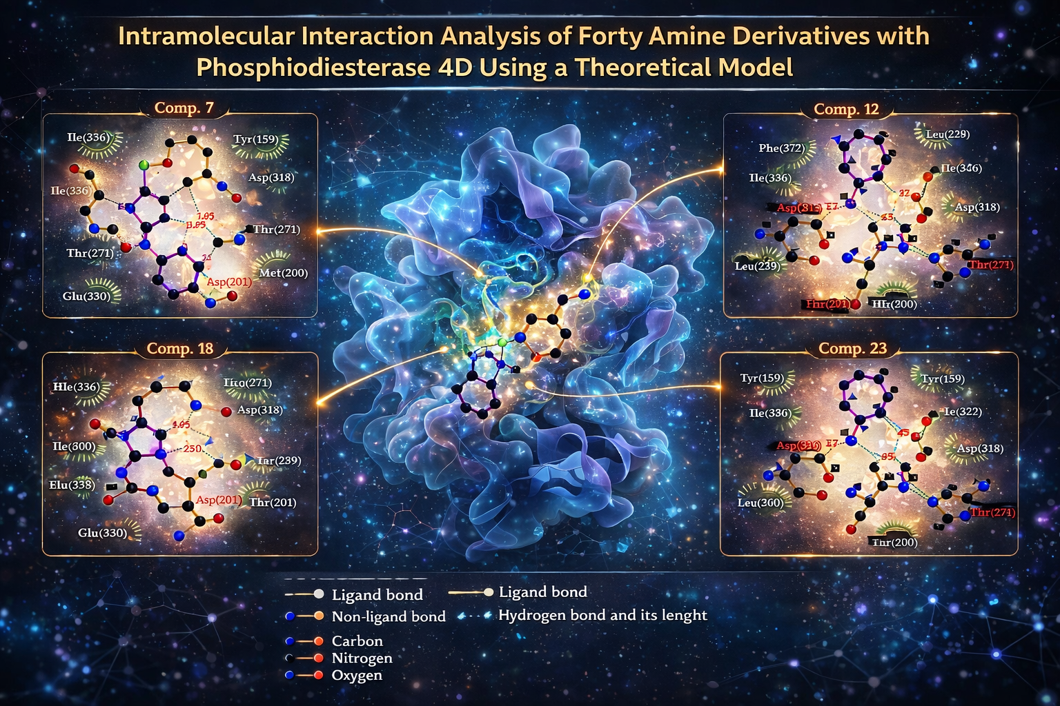 Intramolecular interaction analysis of forty amine derivatives with phosphodiesterase 4D using a theoretical model